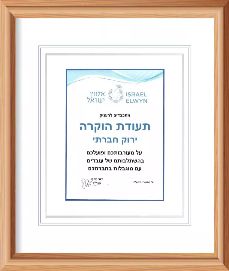 Thanks to its activities, Socially Green has received certificates of appreciation from leading bodies in the economy for the integration and employment of people with disabilities.